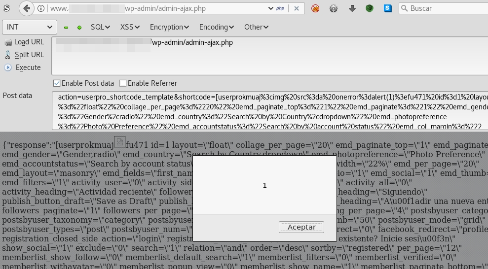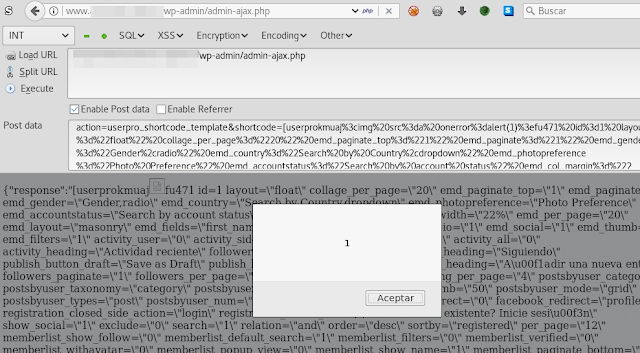 Este fallos afecta en el momento en que el usuario intenta realizar un login, por lo tanto la url que atacamos es la /wp-admin/admin-ajax.php, ya que cuando envía los datos manda un parámetro llamado userpro